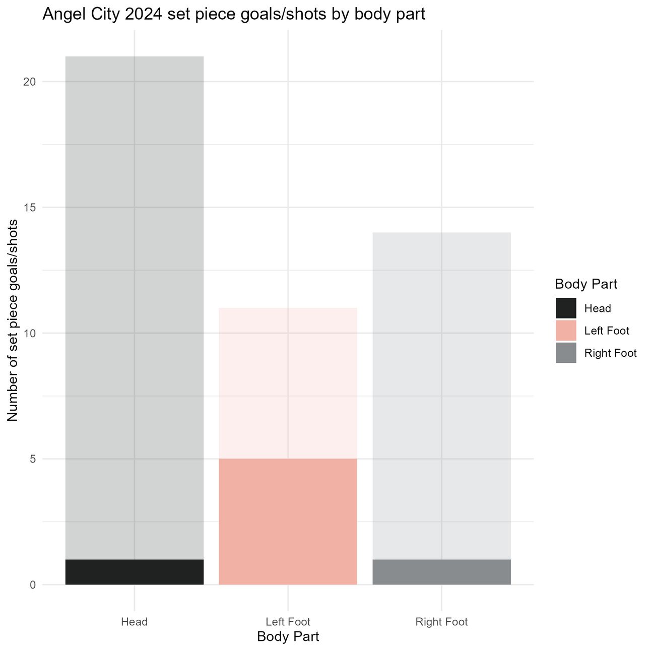 If you take away those against Angel City, this was the distribution of set piece shots and goals by body part in the 2024 NWSL season.