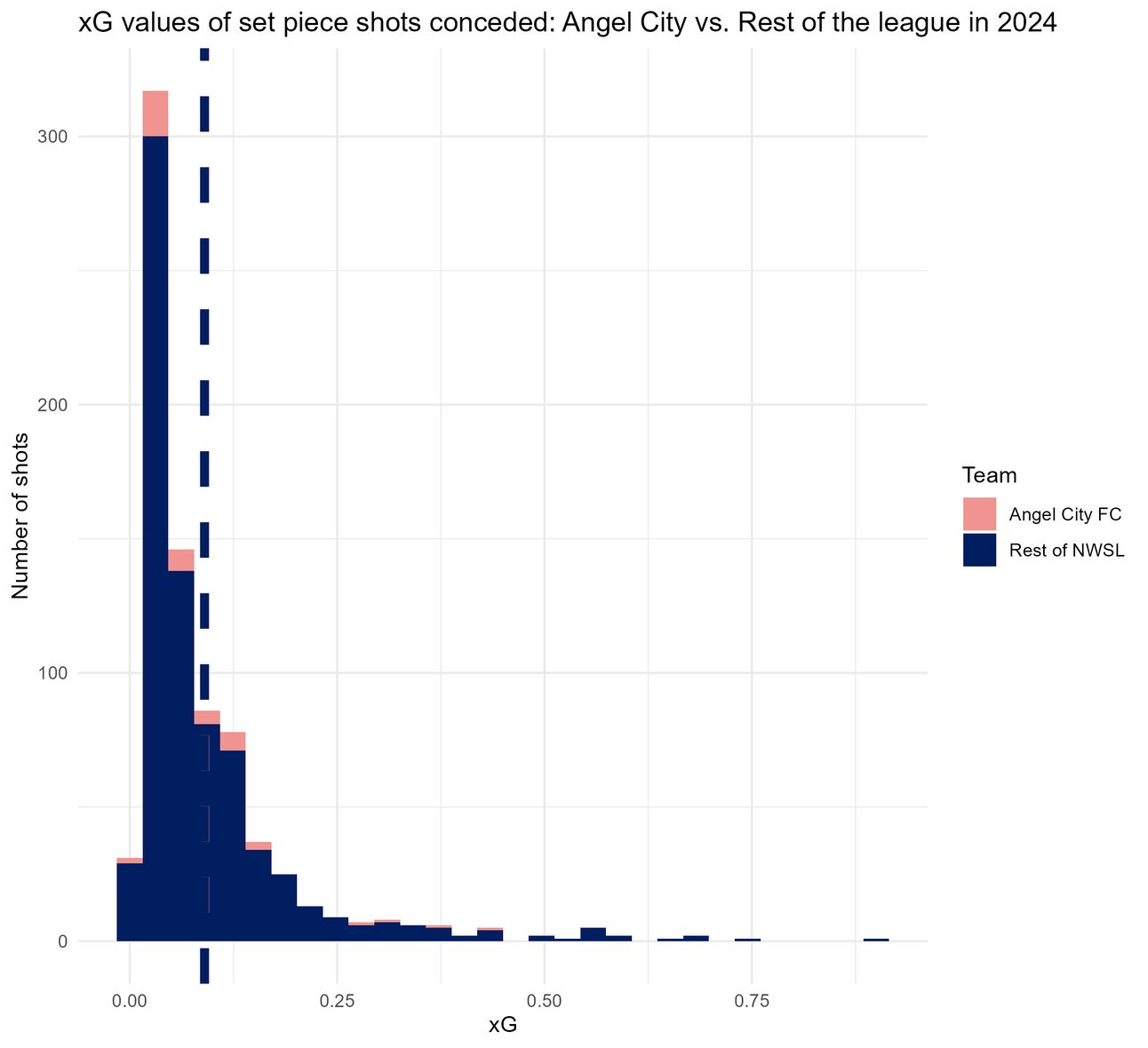 When it comes to set piece goals, Angel City has a higher xG per shot than the rest of the league, which is probably a result of of the factors discussed above, particularly giving opponents too much space and allowing them to get close to the goal.