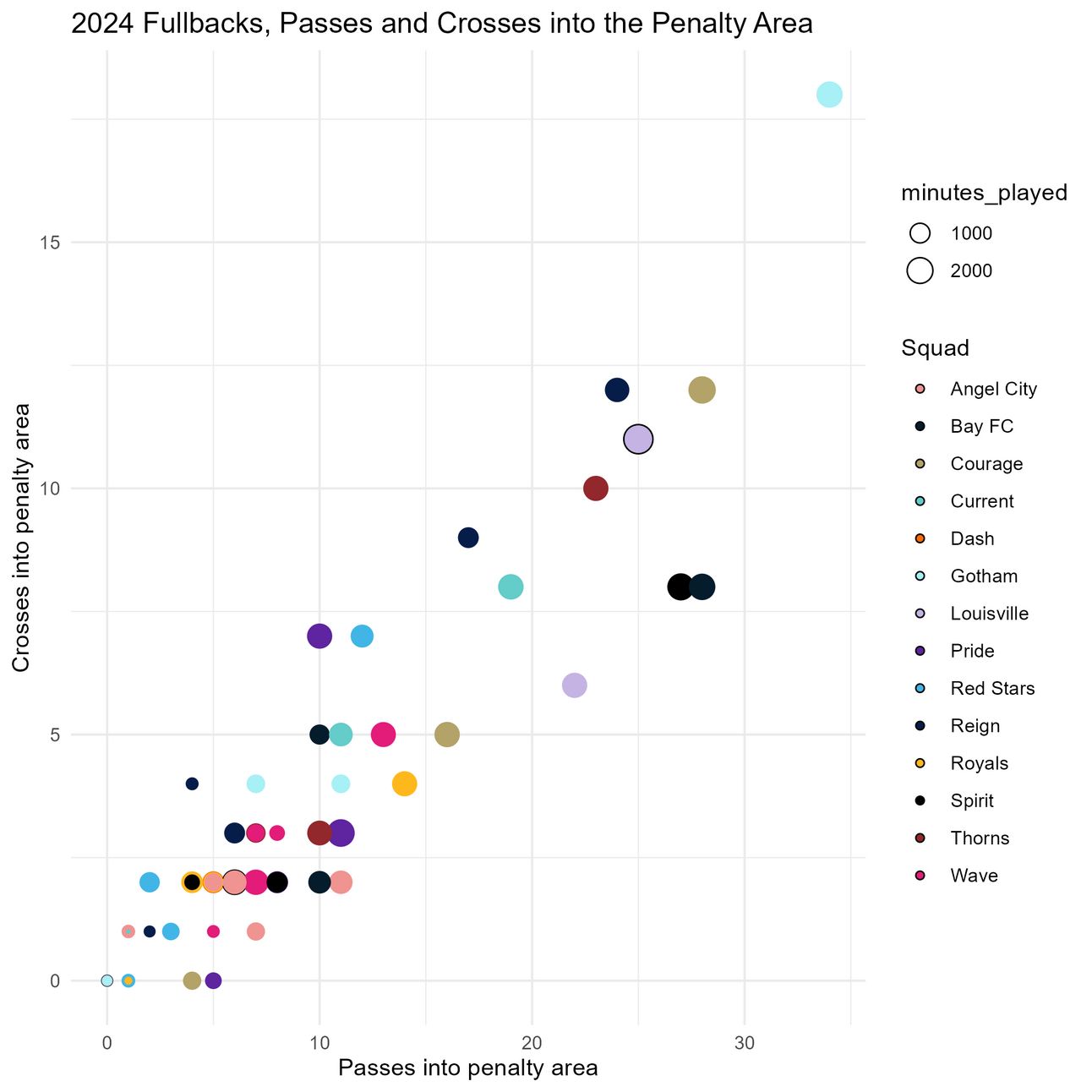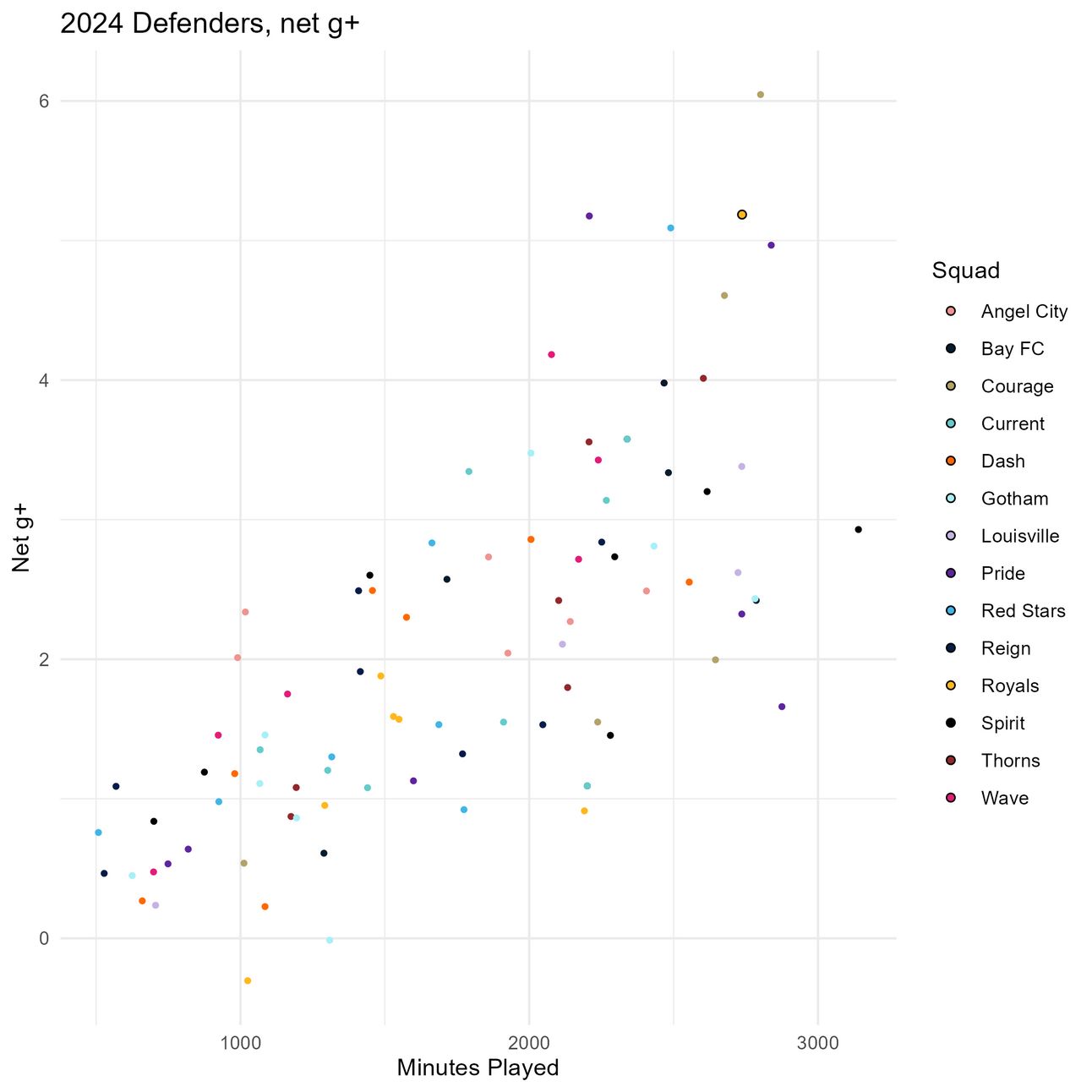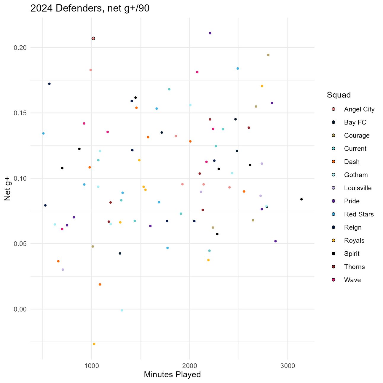 She had the second highest net g+ in the league among defenders in 2024, behind Kaleigh Kurtz, meaning overall her actions increased her team’s chances of scoring and decreased her team’s chances of conceding.