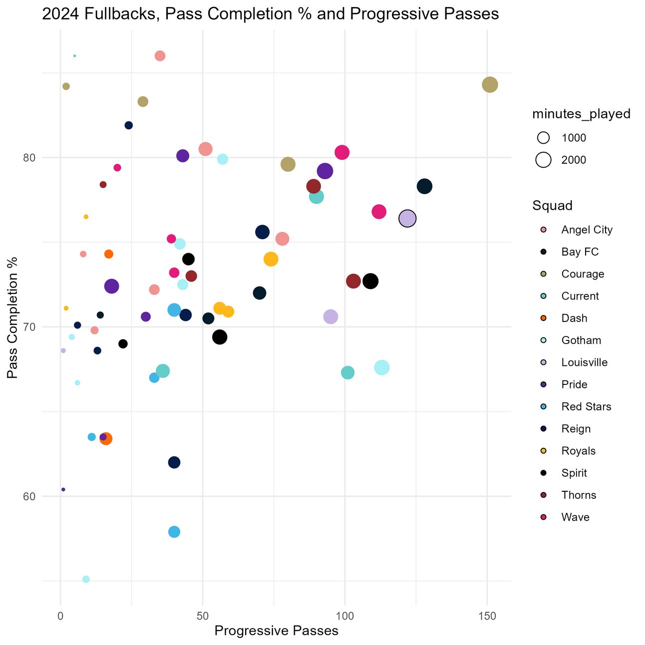 Her pass completion percentage was well above average among fullbacks, which is especially impressive considering how many of her passes were progressive passes that had a much higher chance of getting cut off or not reaching their target than other passes that defenders typically do.