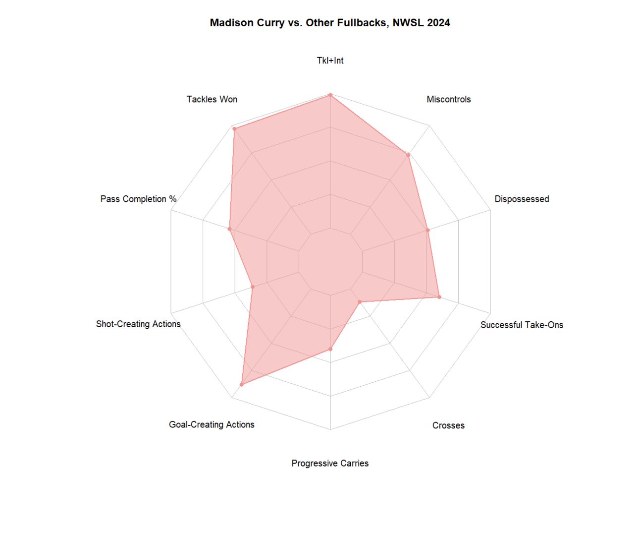 Curry is also prolific offensively. She is among the top fullbacks in goal creating actions and take-ons while keeping control of the ball, and is decent at shot-creation and progressive carries. She will be playing with a team that looks like it will be more put-together than her previous team, and I feel that she will contribute significantly to both their attack and their defense.