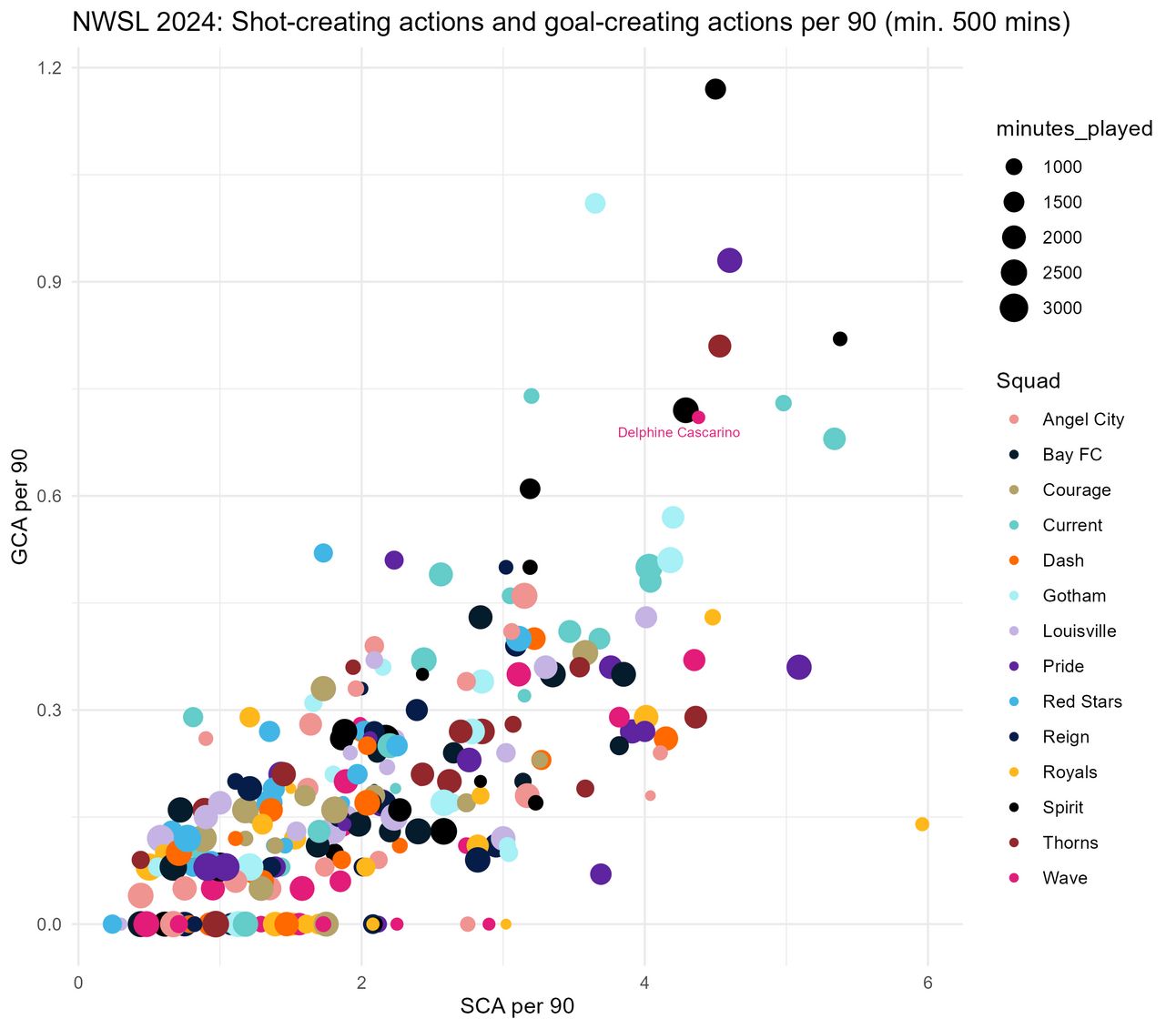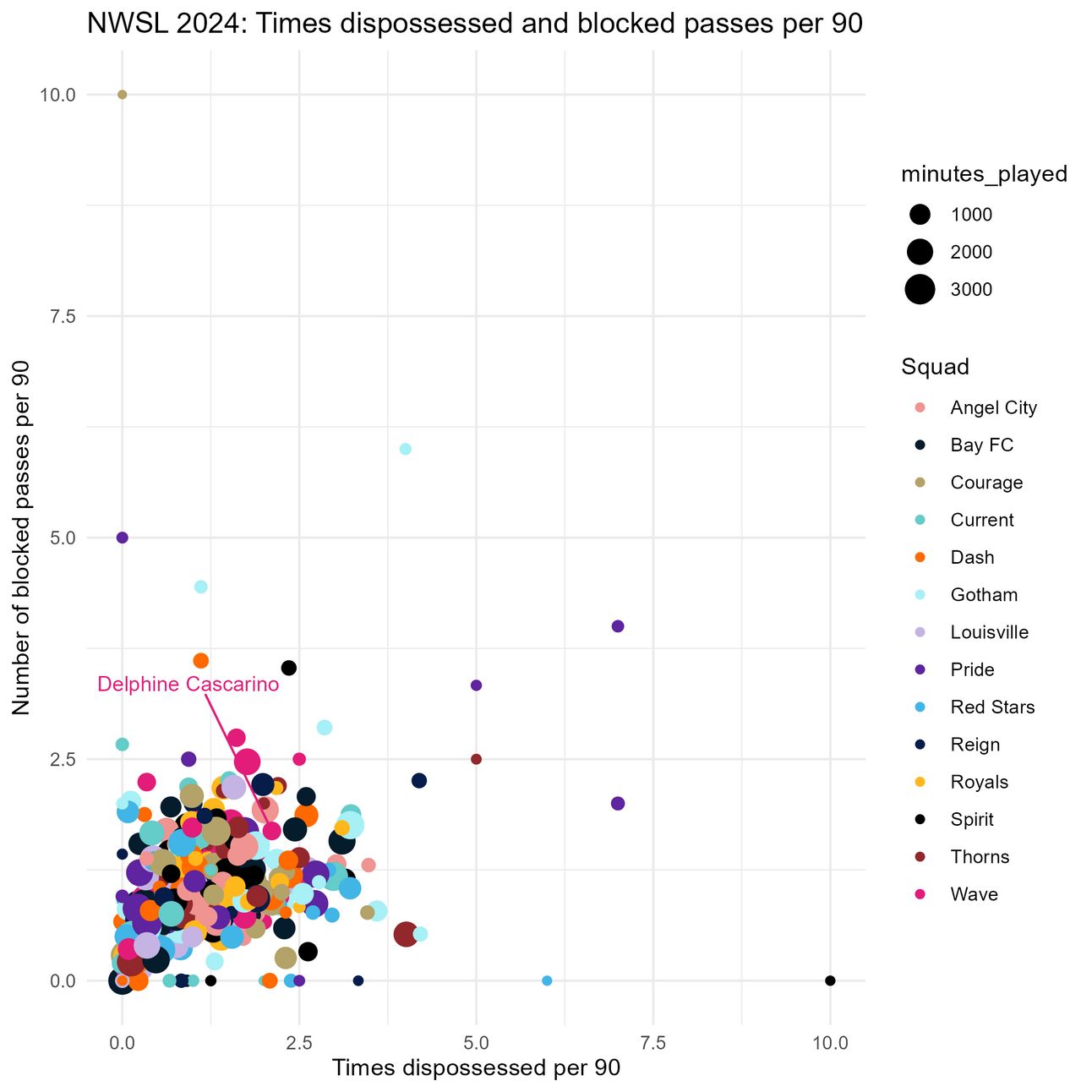 Delphine Cascarino has been such a force for the Wave ever since she joined the team in July 2024 and has not really shown any big weaknesses yet, except for the fact that she was dispossessed and had her passes blocked more than the average NWSL player in 2024. However, this is not really reflected in her other statistics–she is just that good of a player. San Diego Wave, a team where rookies and teenagers are expected to shoulder a huge burden this year, is a big wild card, but if they manage to put together the right pieces to work with Cascarino, they will be a much scarier team than anyone expects. We already saw what Delphine Cascarino is capable of playing on a not-so-great team–she’ll be extra interesting to watch if we get to see what she can do with a competent one.
