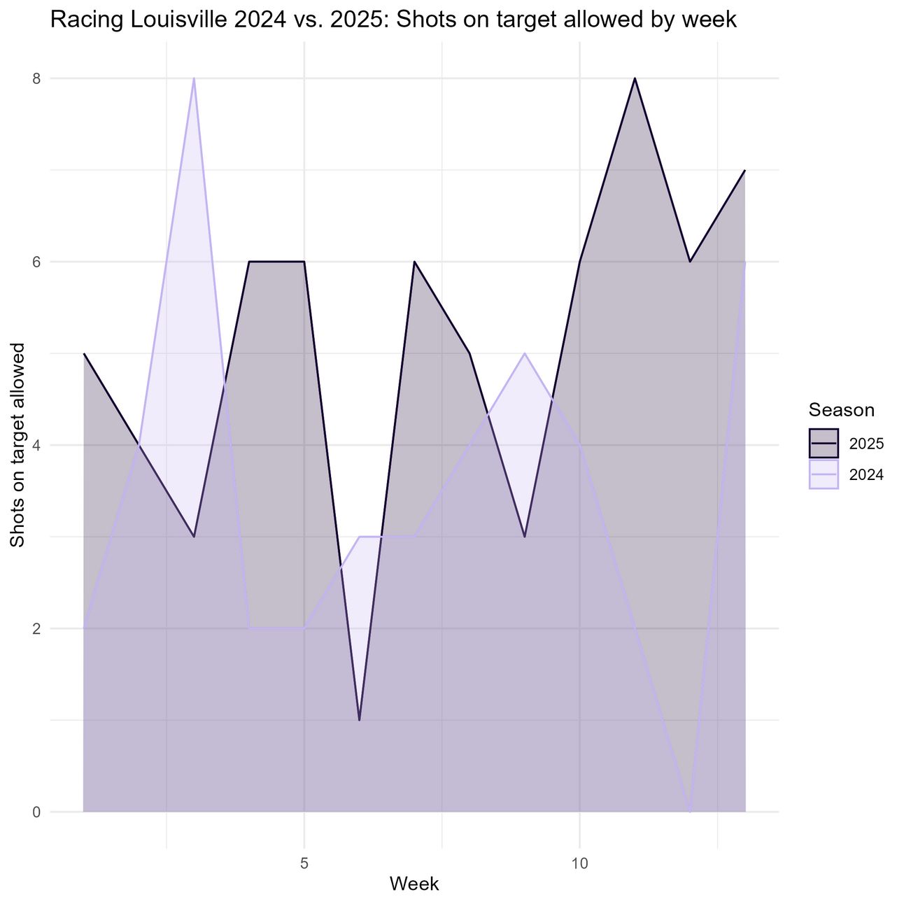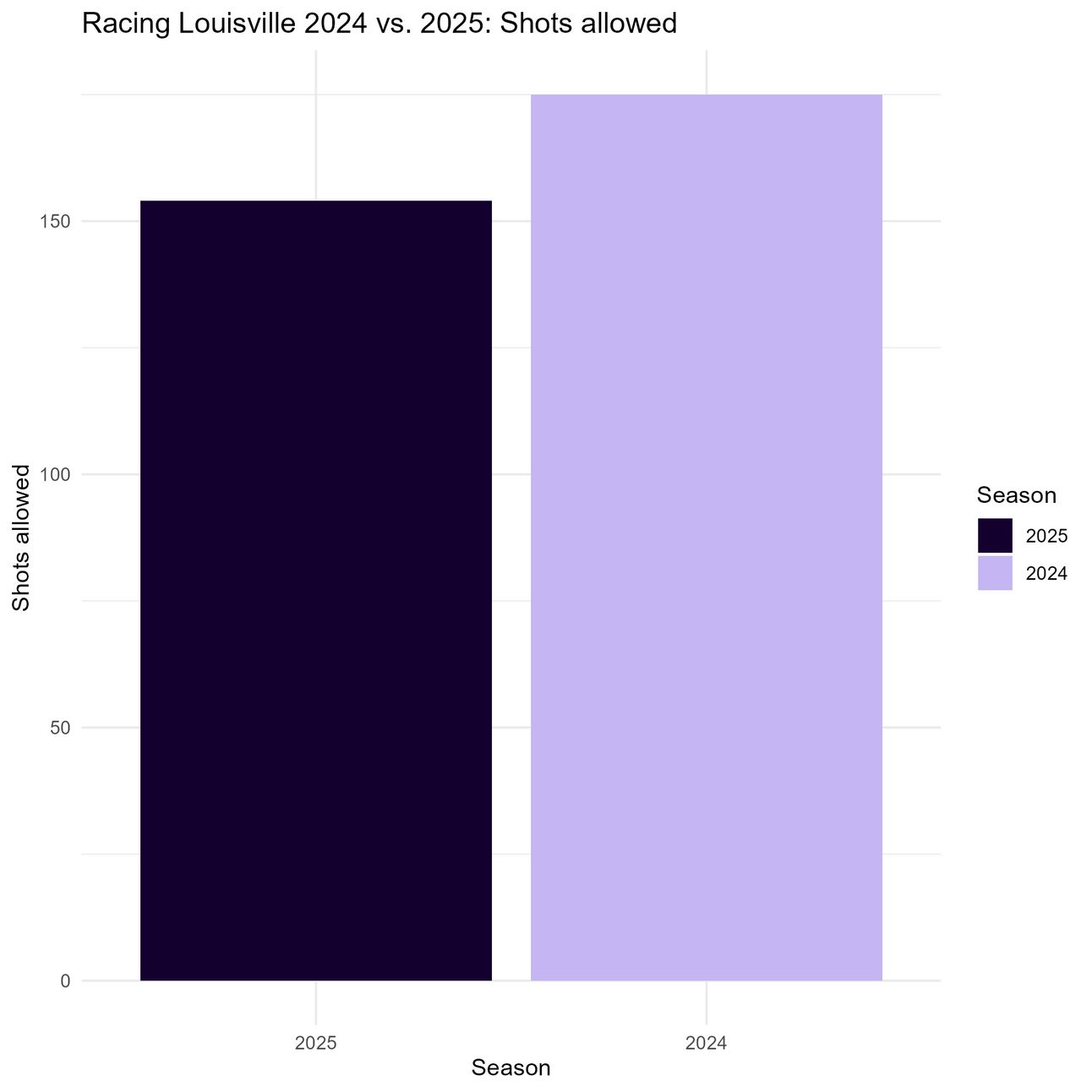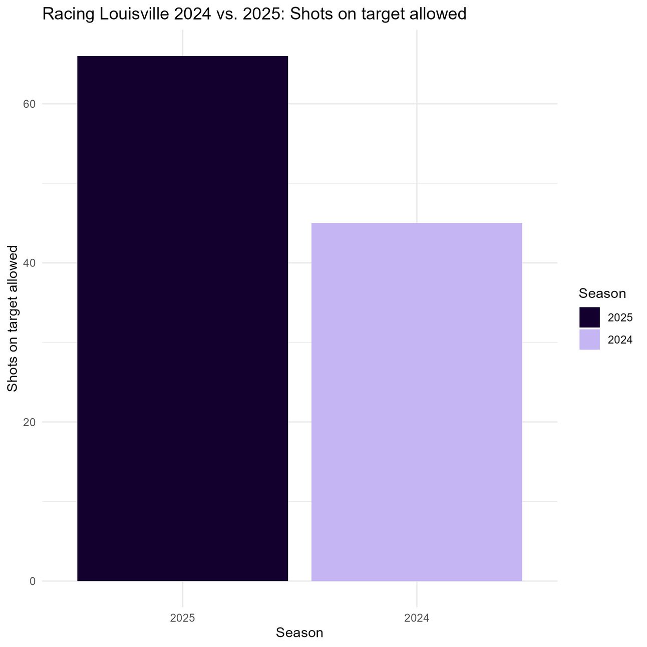 Yeah not good at all. Per this test, Racing Louisville is allowing significantly more shots on target this season than last season, despite allowing fewer shots overall.