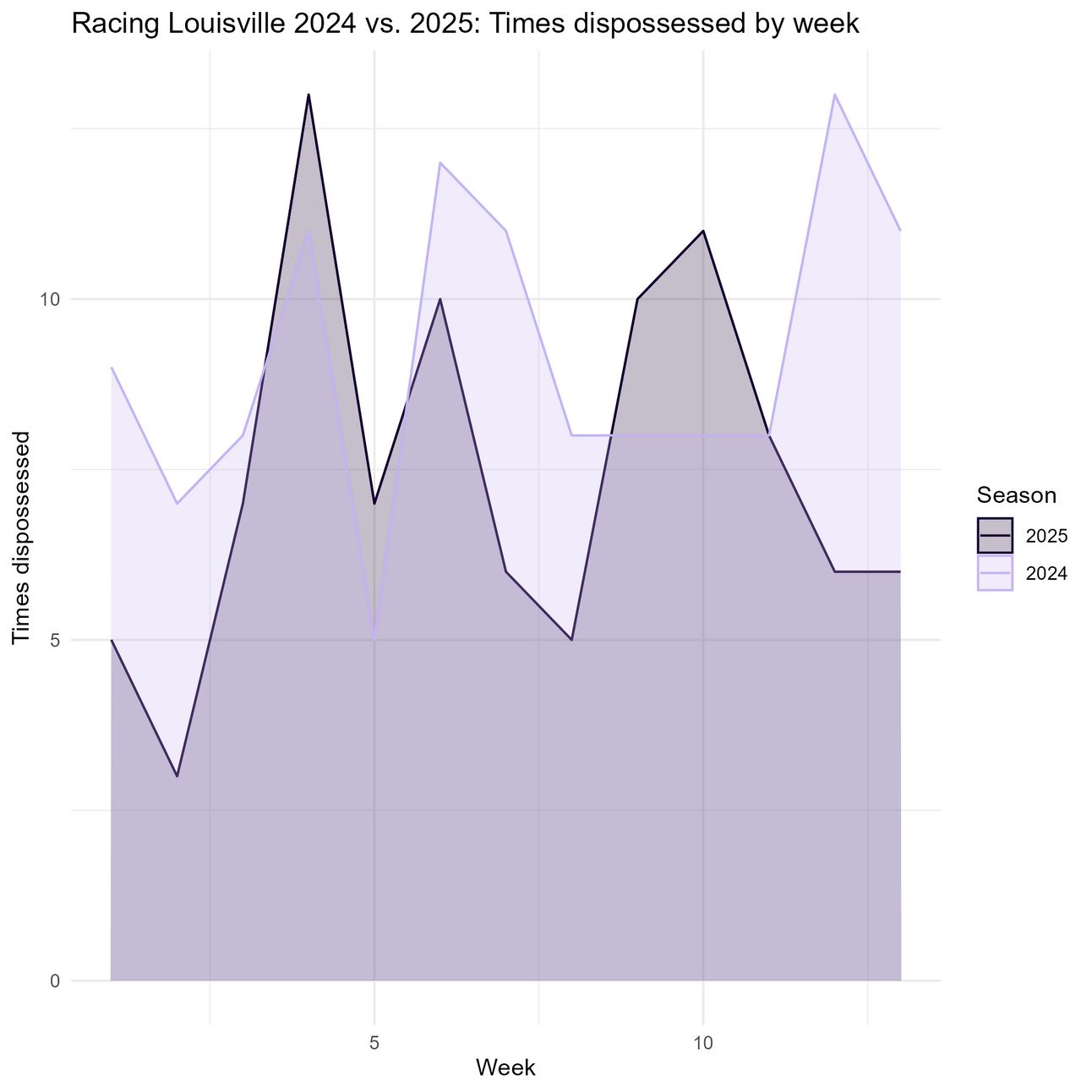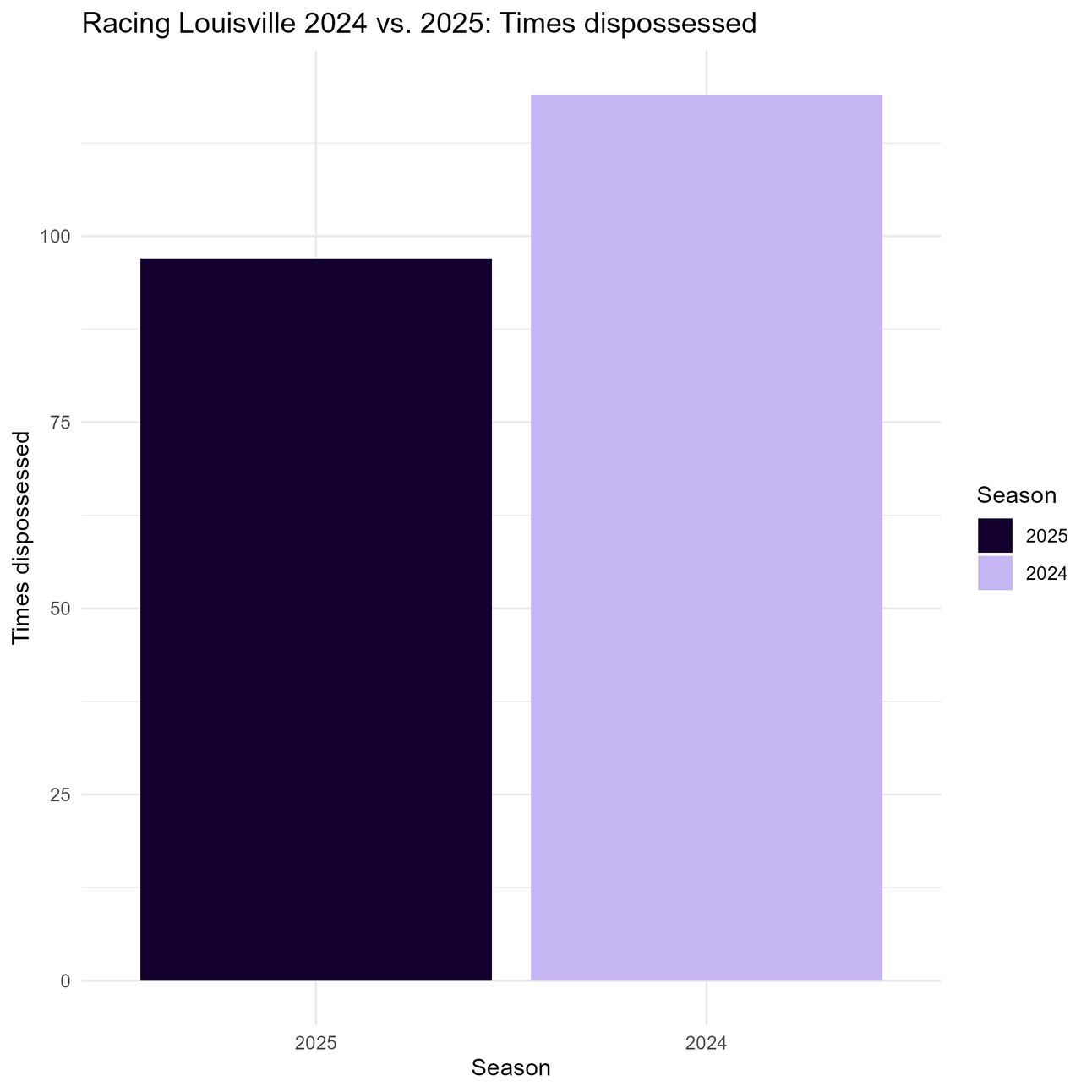 That’s statistically significant!! Racing Louisville is getting dispossessed significantly less this season than the last.