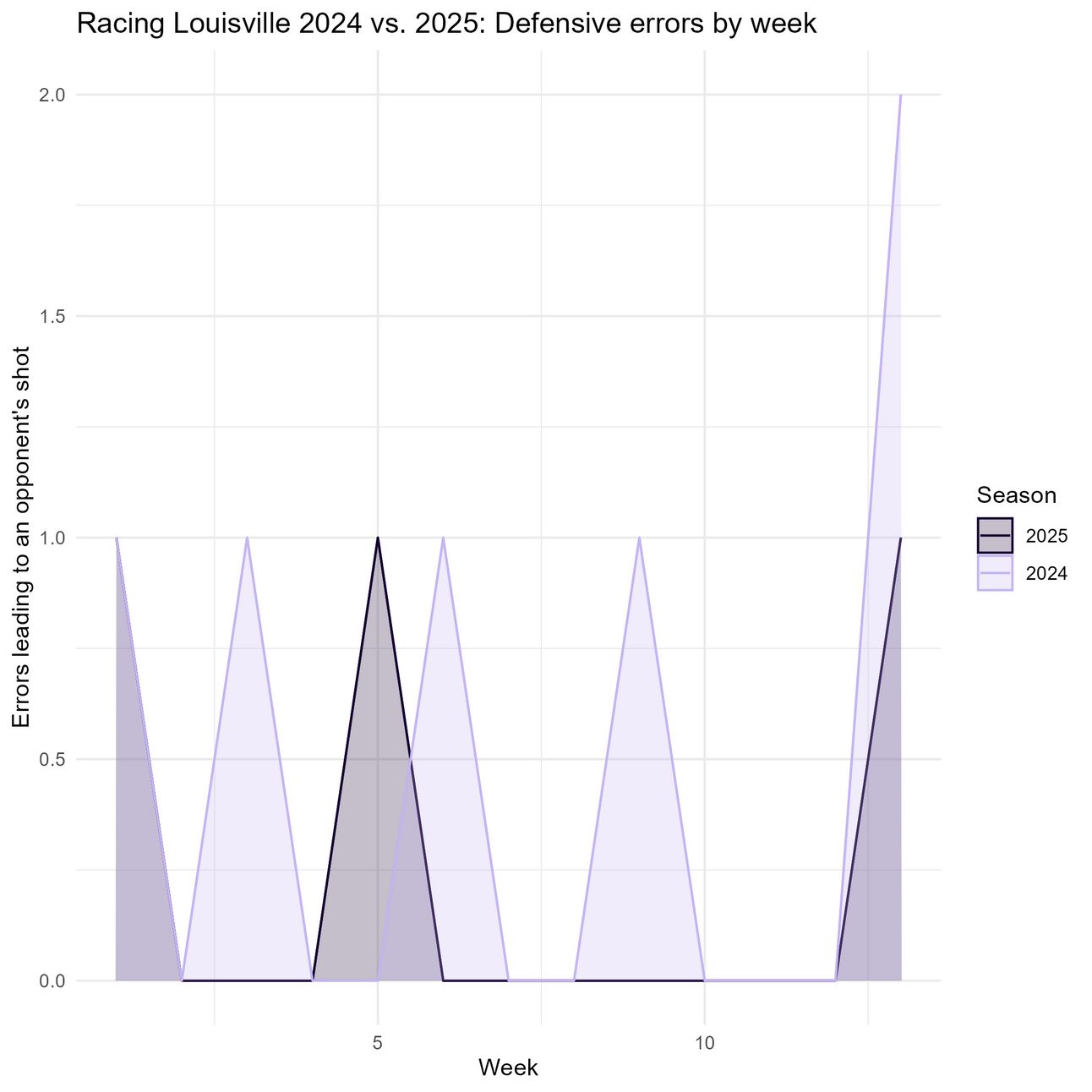 My overall takeaway is that Louisville is overall doing slightly better offensively this season, but really the only thing we should be reading into is that they are taking more shots. This is still pretty big: being able to get into a position to take a shot is a win, and theoretically the more time they are spending taking shots, the less time their opponents have to take shots of their own. Let’s see if that last bit is actually true, though.