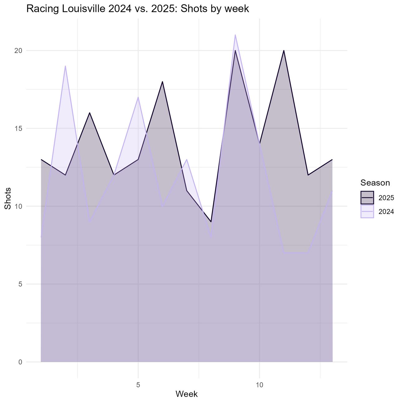 Racing Louisville appear to be taking more shots, averaging 2.1 more shots per game this season.