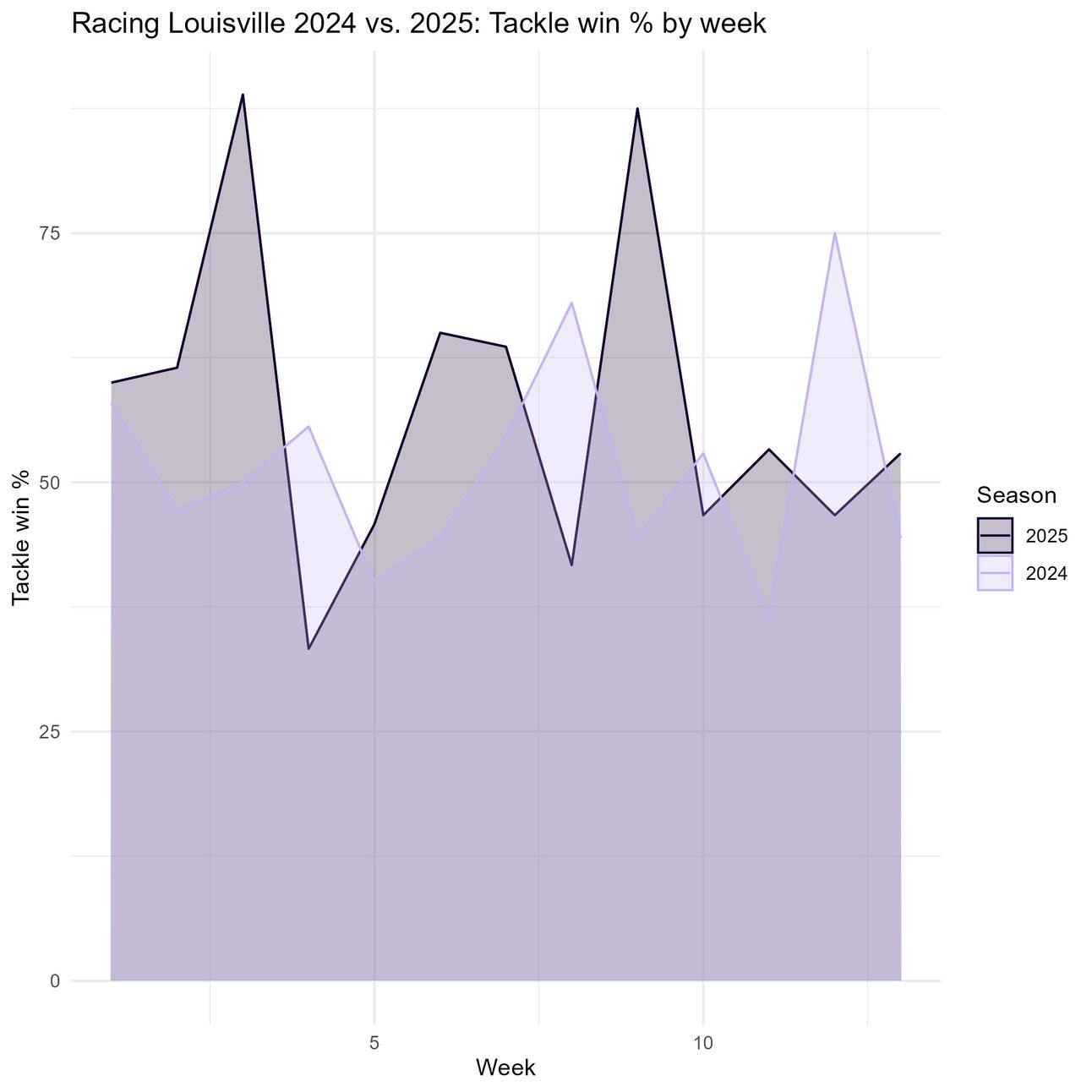 Louisville is winning slightly more tackles in the middle third this season, but just slightly.