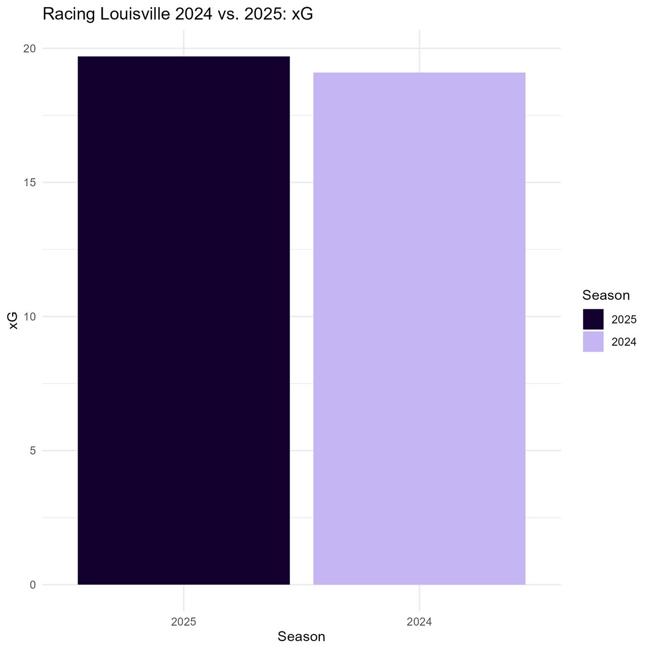 Null hypothesis: Louisville is not generating more xG than they were at this point last season.