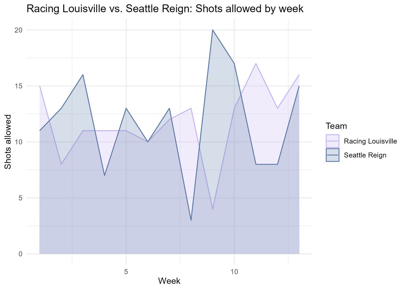 And statistically significantly so. Per this test, Racing Louisville is allowing significantly more shots on target than the Seattle Reign this season, despite allowing the same number of shots overall.
