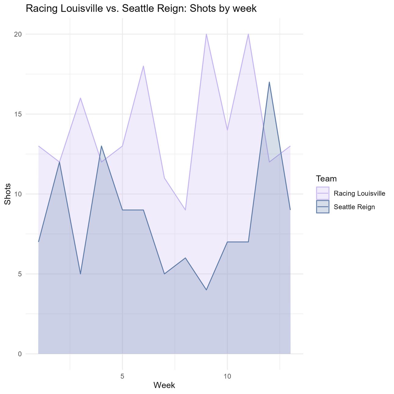 Racing Louisville appear to be taking more shots, averaging 5.6 more shots per game than Seattle this season.