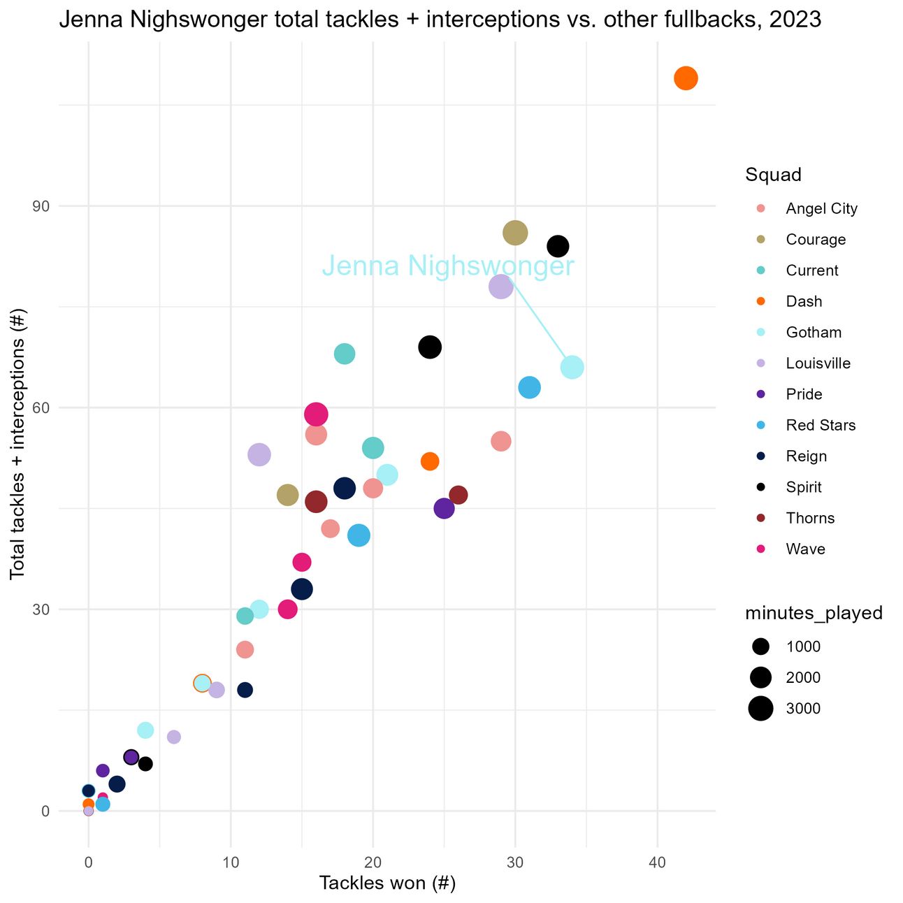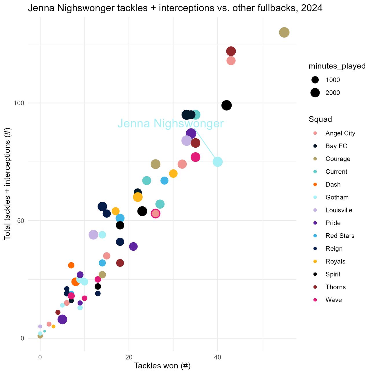 Visual #9: Jenna vs. other fullbacks on total tackles and interceptions