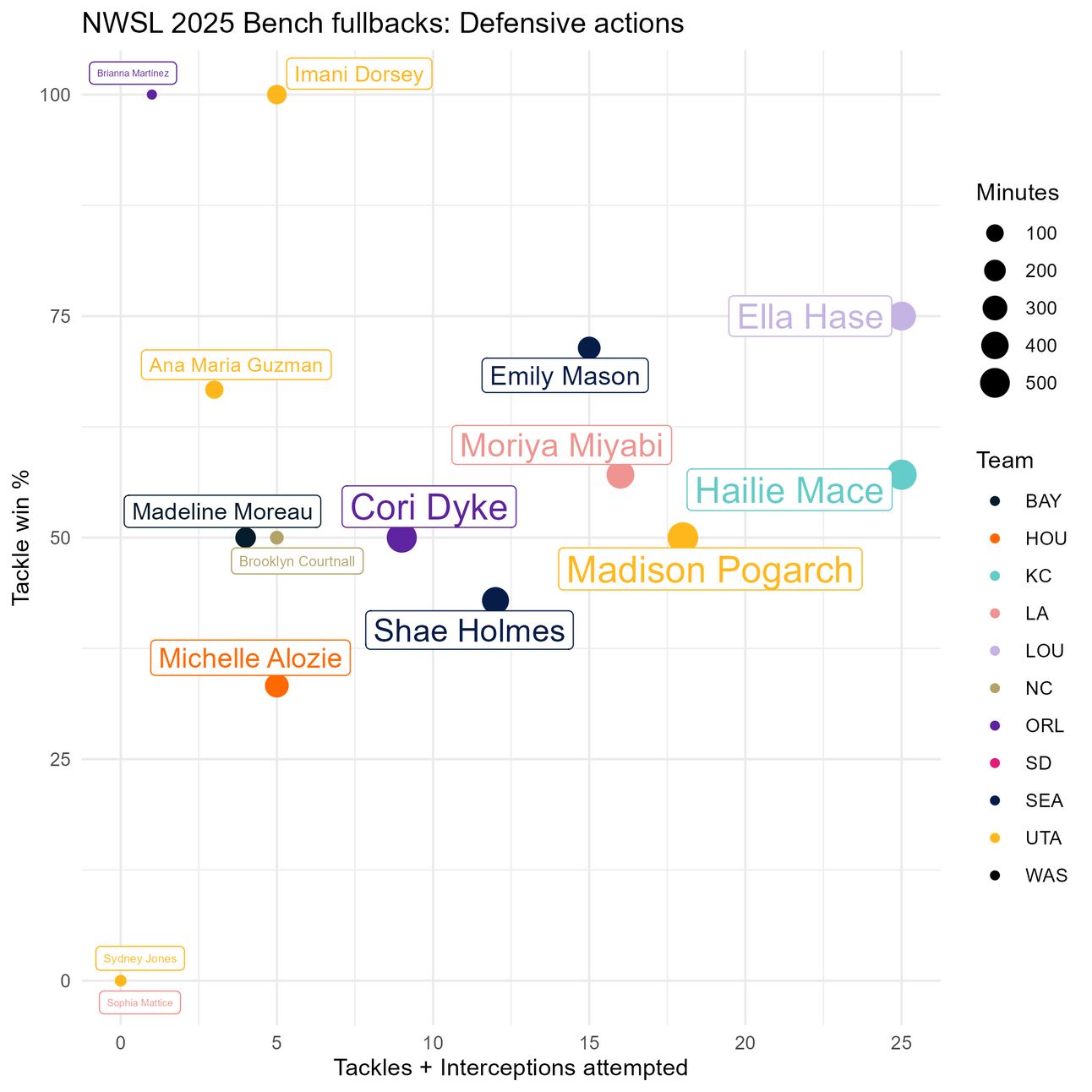 From these graphs, I’m really liking what I’m seeing from Hailie Mace overall, and I think Ella Hase has also stood out. As a bonus, they primarily play right and left back, respectively, so this pairing would actually work.