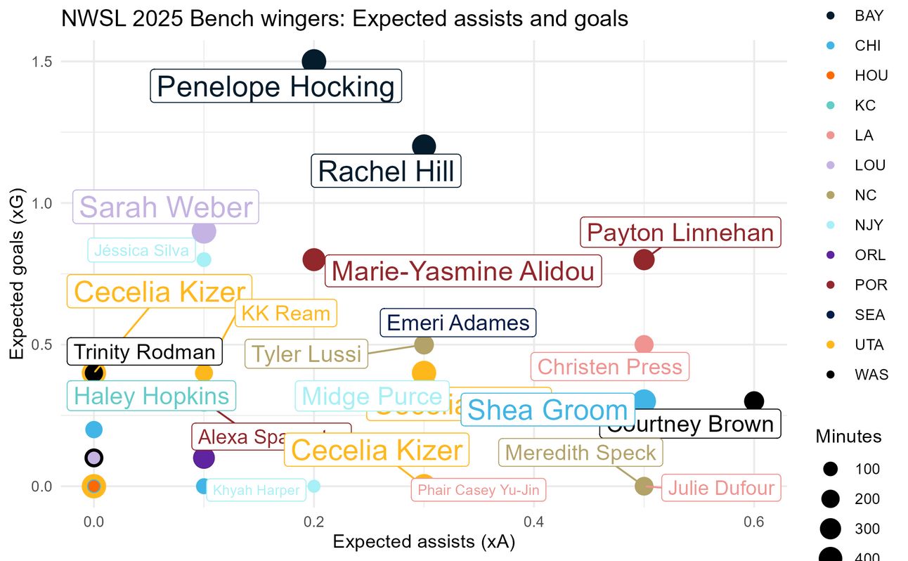 So without further ado, here is a data-driven bench best XI for the 2025 NWSL season through 10 weeks.
